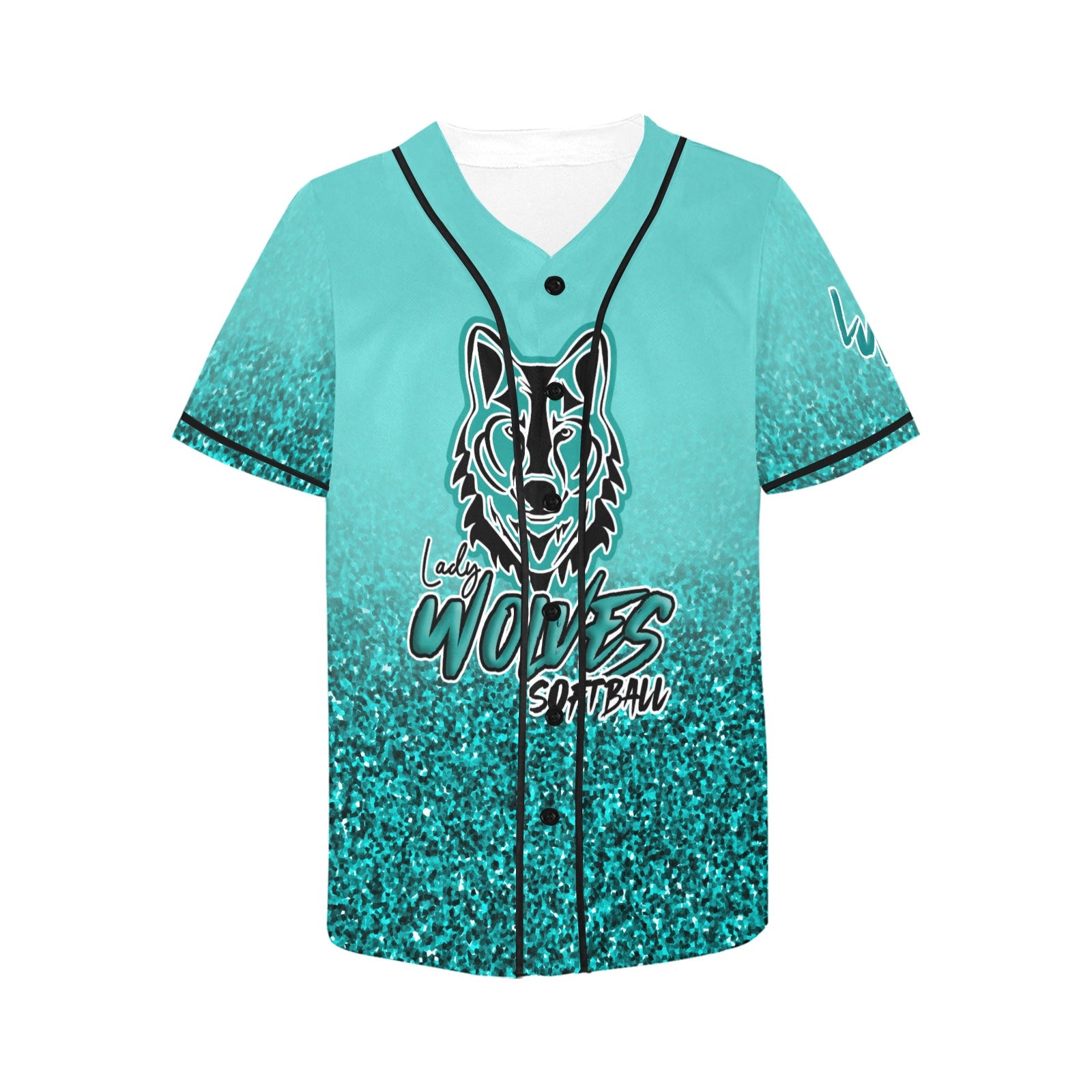 Lady Wolves Turquoise Glitter All Over Print Baseball Jersey for Women (Model T50)