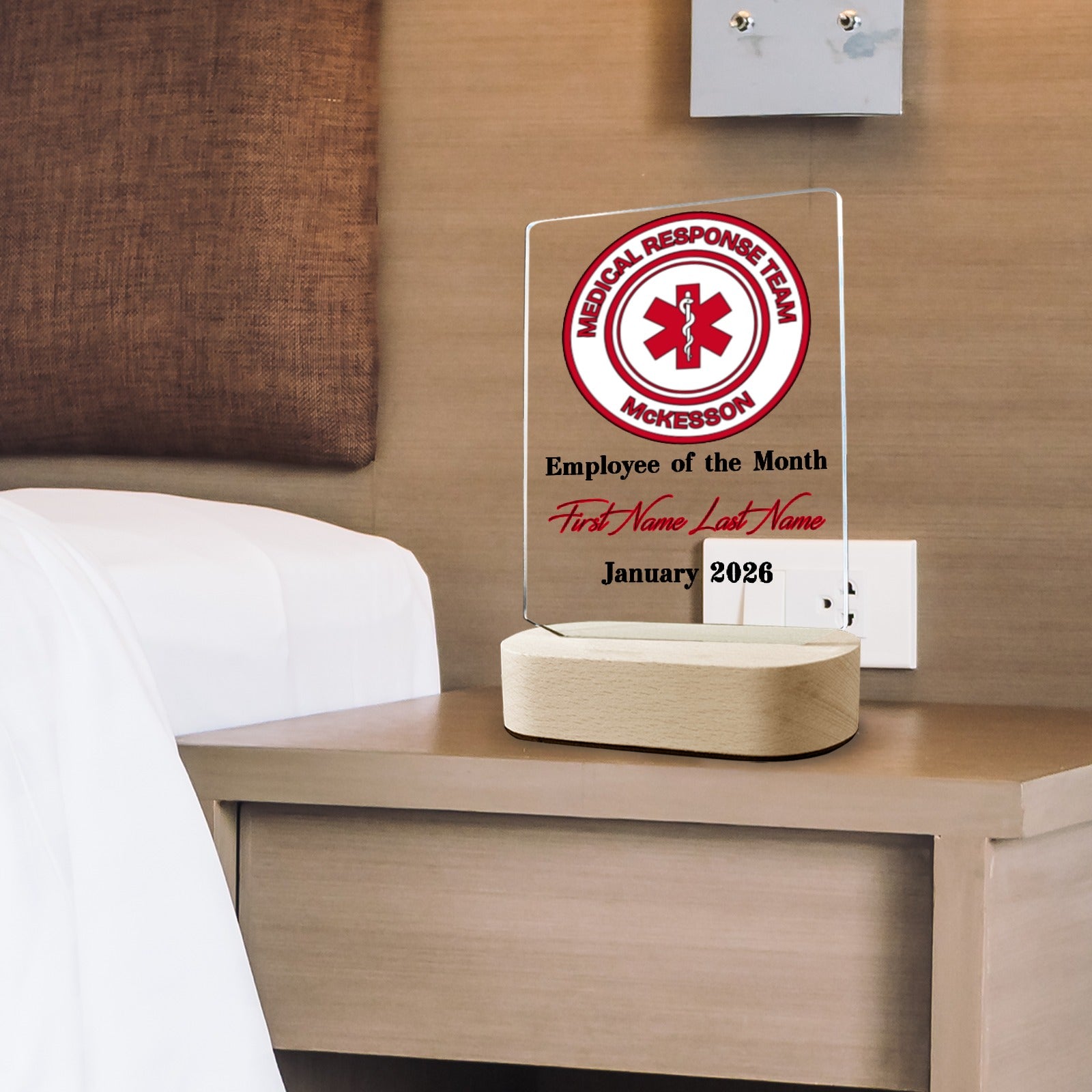 • Constructed with acrylic panel and wooden stand.