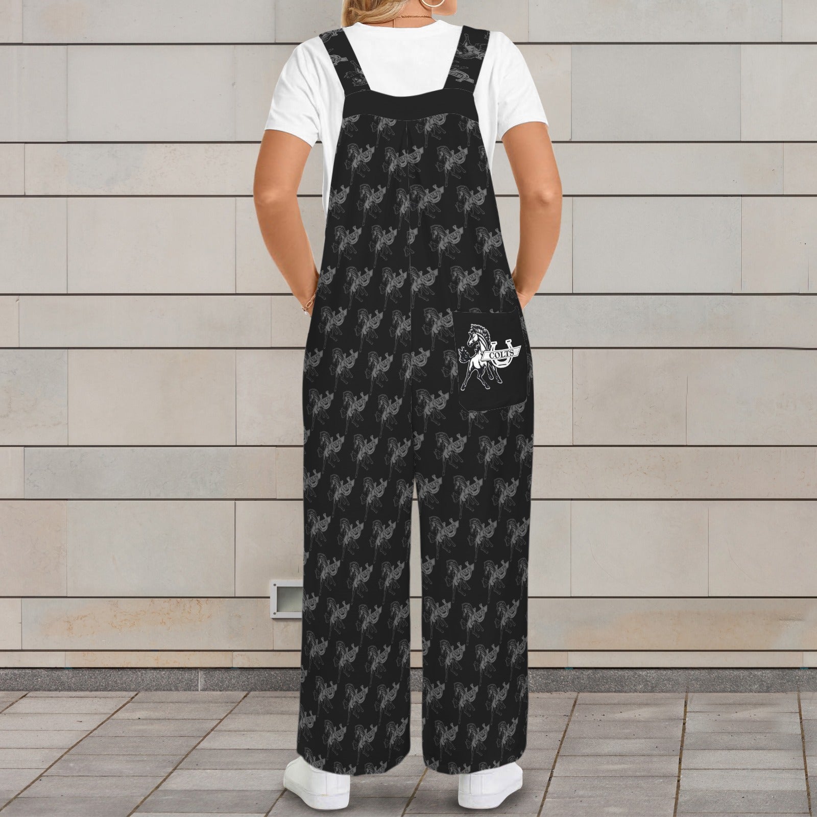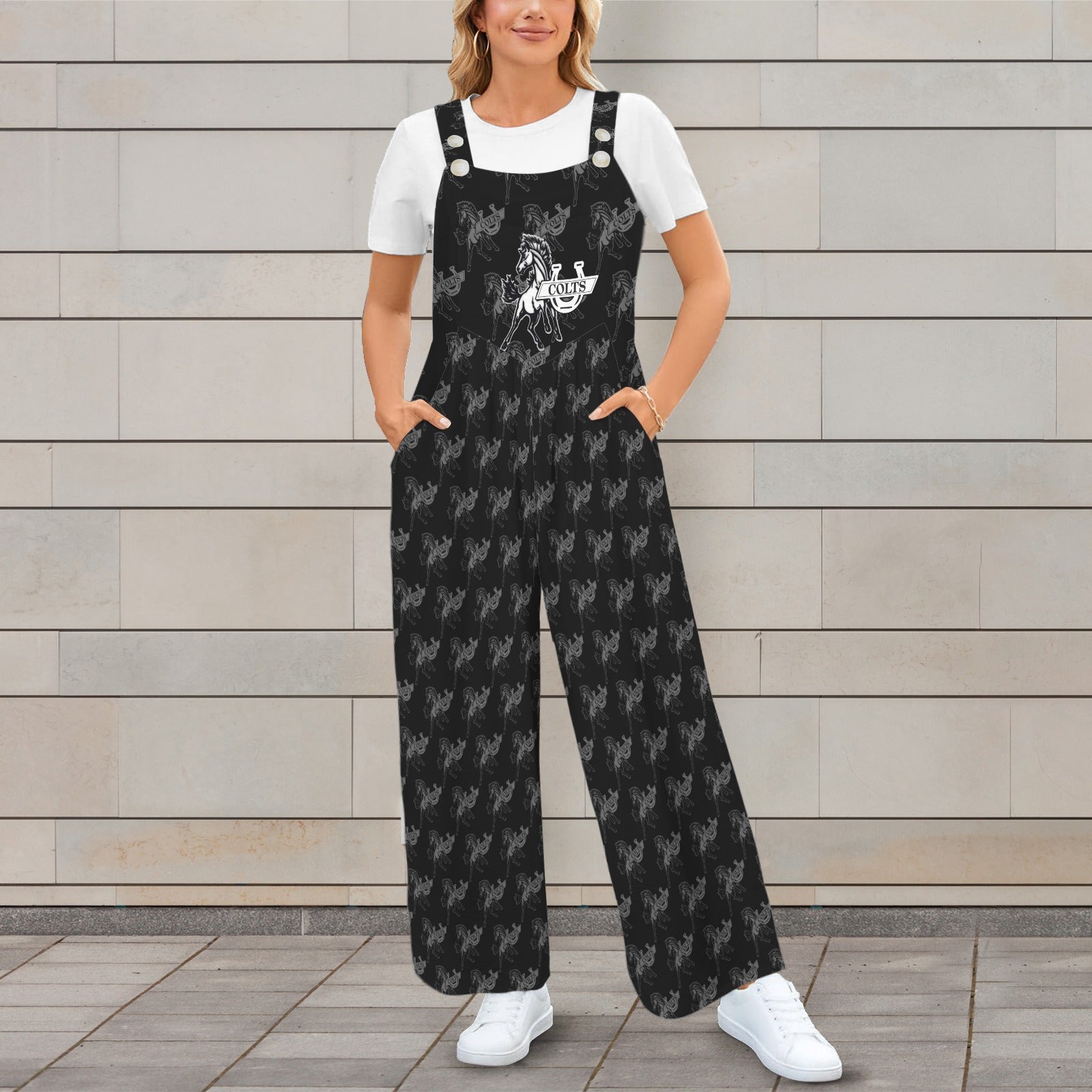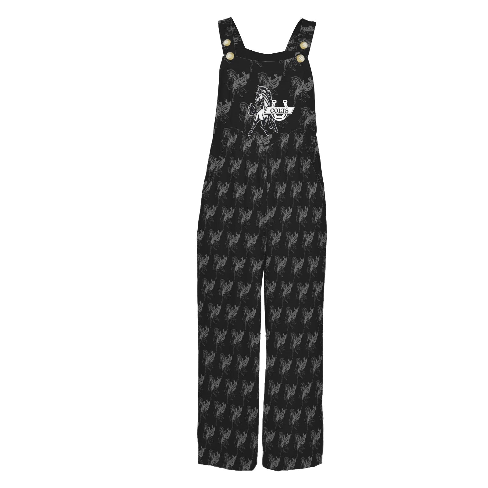 • Product Features: One piece sleeveless jumpsuit, classic button shoulder strap, airy wide leg pants, functional three pockets.